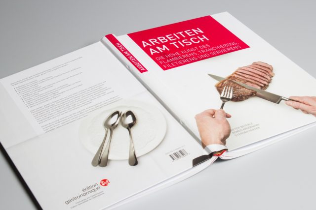Über mehrere Jahre hinweg lektoriert STIER UND BERGEN Publikationen der édition gastronomique, den Fachverlag der GastroSuisse, unter anderem das Buch «Arbeiten am Tisch». Auf knapp 280 Seiten wird die hohe Kunst des Flambierens, Tranchierens, Filetierens und Servierens illustriert, Schritt für Schritt in Bild und Wort.