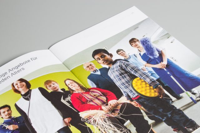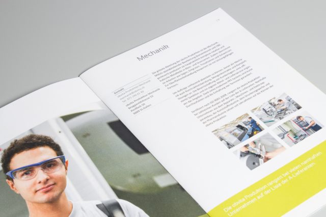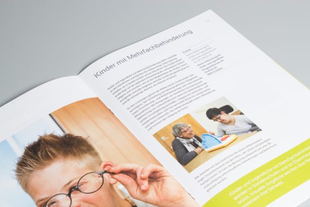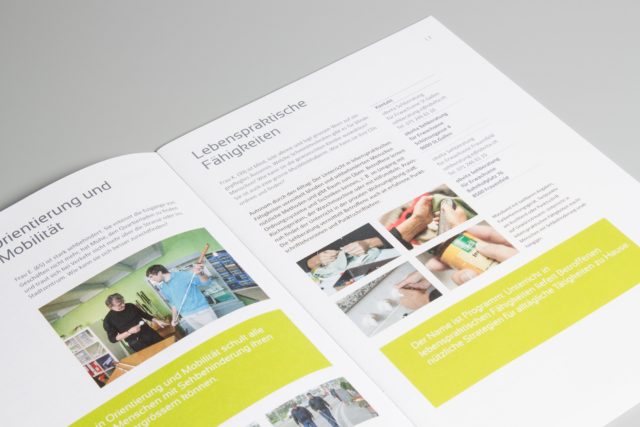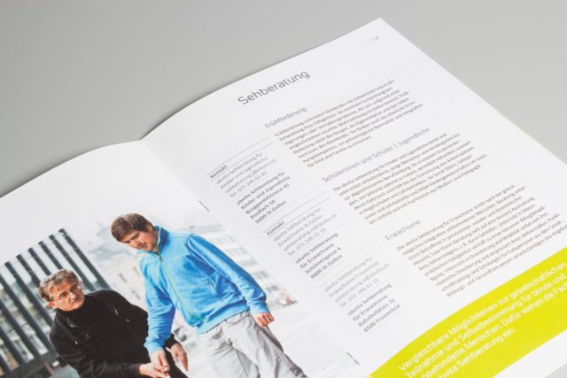 Den Brand entwickelt die Agentur Rembrand. STIER UND BERGEN schreibt die Broschürentexte für die Bereiche Produktion, Sehberatung für Kinder und Jugendliche sowie Sehberatung für Erwachsene.