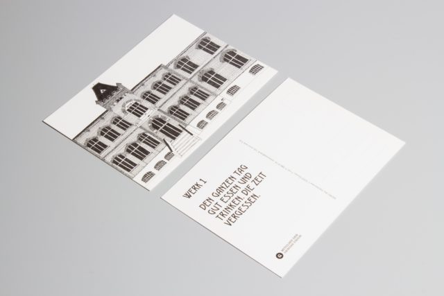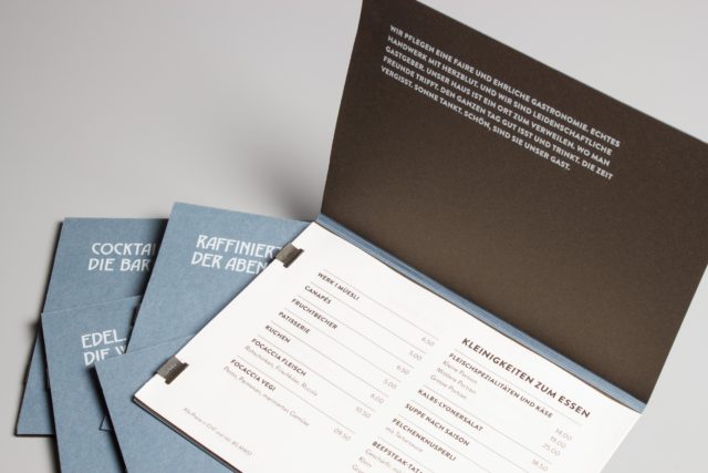 In Anlehnung an den Jugendstil hat die Agentur Adicto Marke und Schrift entwickelt. STIER UND BERGEN integriert Geschichte und Geschichten in Texten auf Speisekarten, Postkarten und auf der Webseite und zeichnet für die Pressearbeit sowie die Social-Media-Texte zu den Veranstaltungen verantwortlich. Eva Rekade illustriert das Haus.