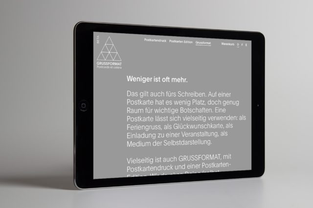 Die Macher von Grussformat sind Grafiker und Art Director Samuel Wolf sowie Gaël Hugo, Creative Director und Interaction Designer. STIER UND BERGEN schreibt unter anderem die Webtexte.